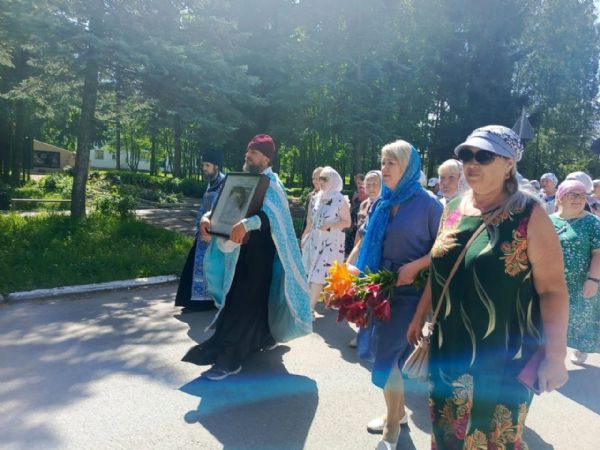 ΠΠ°Π»Π΅Π΅ Π²Π΅ΡΡΡΡΠΈΠ΅ Π²ΠΎ Π³Π»Π°Π²Π΅ Ρ Π±Π°ΡΡΡΠΊΠΎΠΉ ΠΏΡΠΎΡΠ»ΠΈ Ρ Π‘Π΅Π΄ΠΌΠΈΠ΅Π·Π΅ΡΠ½ΠΎΠΉ ΠΈΠΊΠΎΠ½ΠΎΠΉ Π΄ΠΎ ΡΠ΅Π»Π° ΠΡΡΡΠΊΠΎΠ΅. Π ΡΠ°ΠΉΠΎΠ½Π΅ ΠΡΡΡΠΊΠΎΠΉ ΠΏΠ»ΠΎΡΠΈΠ½Ρ ΡΠ²ΡΡΡΠ½Ρ ΡΠ°Π΄ΠΎΡΡΠ½ΠΎ Π²ΡΡΡΠ΅ΡΠΈΠ»ΠΈ ΠΏΡΠΈΡ ΠΎΠΆΠ°Π½Π΅ Ρ ΡΠ°ΠΌΠ° ΠΡΠ΅ΡΠ²ΡΡΠΎΠΉ Π’ΡΠΎΠΈΡΡ Π²ΠΌΠ΅ΡΡΠ΅ Ρ Π½Π°ΡΡΠΎΡΡΠ΅Π»Π΅ΠΌ ΠΈΠ΅ΡΠ΅Π΅ΠΌ ΠΡΡΠ΅ΡΠ»Π°Π²ΠΎΠΌ ΠΠ°ΠΌΠ°Π΅Π²ΡΠΌ. ΠΡΠ΅ΡΡΠΎΡ ΠΎΠ΄ΡΡ ΠΏΡΠΎΡΠ΅ΡΡΠ²ΠΎΠ²Π°Π»ΠΈ ΠΏΠΎ ΡΠ»ΠΈΡΠ°ΠΌ ΡΠ΅Π»Π° Π΄ΠΎ Π’ΡΠΎΠΈΡΠΊΠΎΠ³ΠΎ Ρ ΡΠ°ΠΌΠ°, Π³Π΄Π΅ ΡΠ²ΡΡΠ΅Π½Π½ΠΎΡΠ»ΡΠΆΠΈΡΠ΅Π»ΠΈ ΡΠΎΠ²Π΅ΡΡΠΈΠ»ΠΈ ΠΌΠΎΠ»Π΅Π±Π΅Π½ ΠΈ ΠΎΠΊΡΠΎΠΏΠΈΠ»ΠΈ Π²ΡΠ΅Ρ ΡΠ²ΡΡΠΎΠΉ Π²ΠΎΠ΄ΠΎΠΉ. Π Π·Π°Π²Π΅ΡΡΠ΅Π½ΠΈΠ΅ Π²ΡΠ΅ΠΌ Π±ΡΠ»Π° ΠΏΡΠ΅Π΄Π»ΠΎΠΆΠ΅Π½Π° ΡΡΠ°ΠΏΠ΅Π·Π° Π½Π° ΡΠ²Π΅ΠΆΠ΅ΠΌ Π²ΠΎΠ·Π΄ΡΡ Π΅.