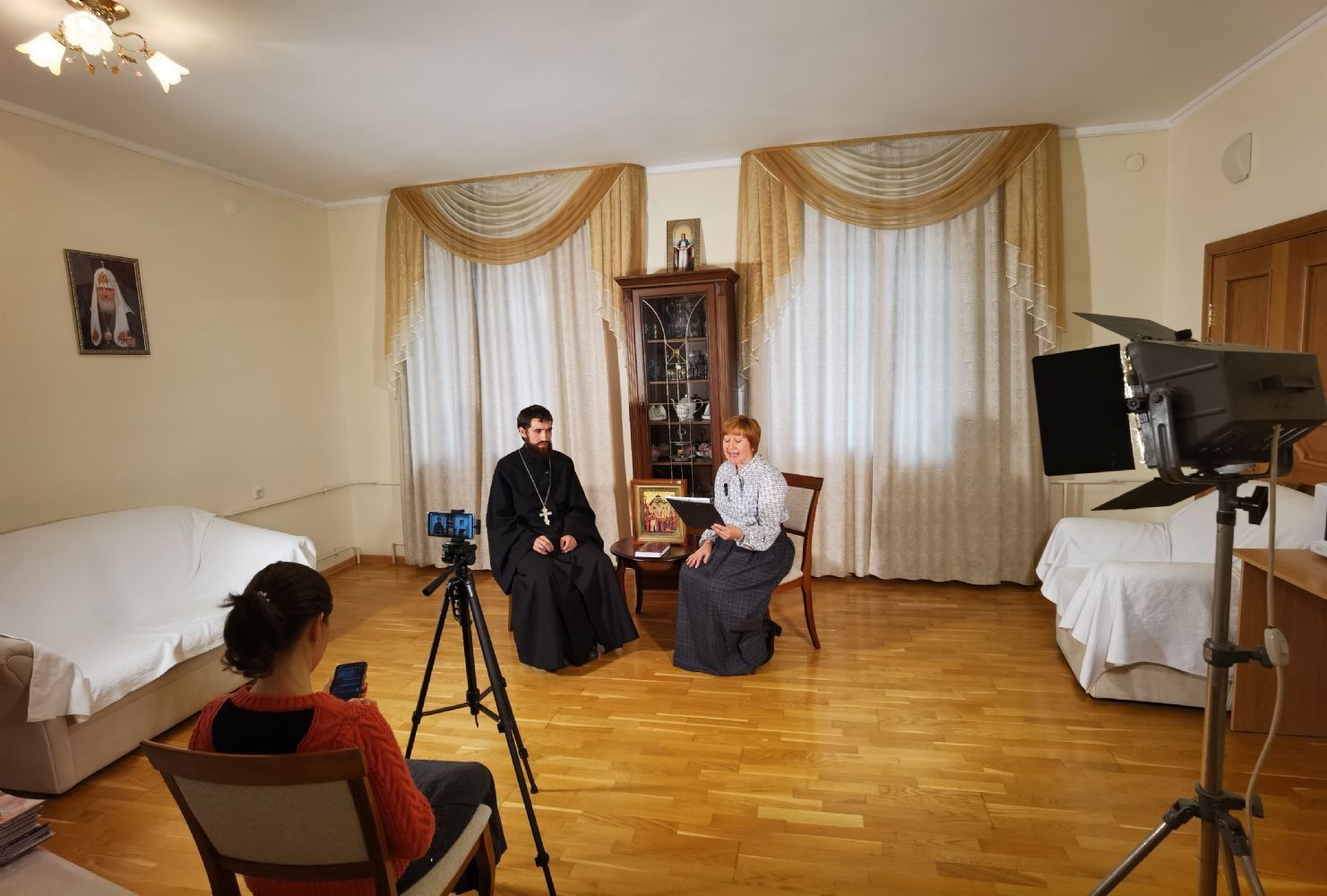Во ходе беседы говорили о истории этого праздника, о Животворящем Кресте Господнем, силе крестного знамения.